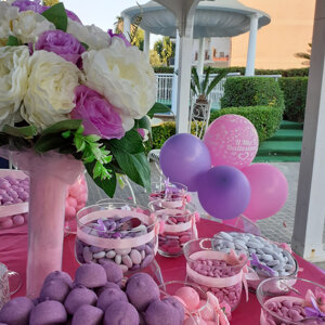 Le nostre Confettate includono Tavoli Decorati, Addobbi con Palloncini e Fondali Personalizzati.
